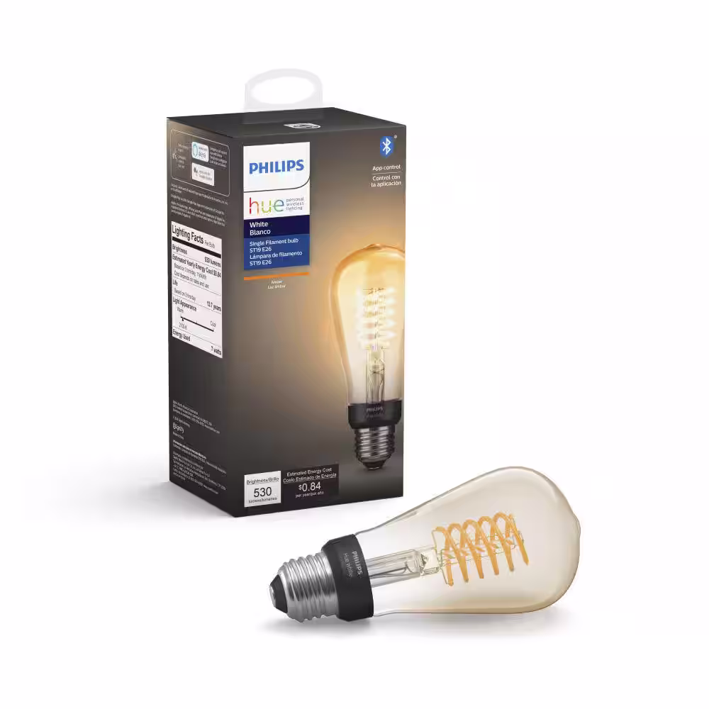 Philips Hue 40-Watt Equivalent A19 Smart LED Vintage Edison Tuneable White Light Bulb with Bluetooth (1-Pack)