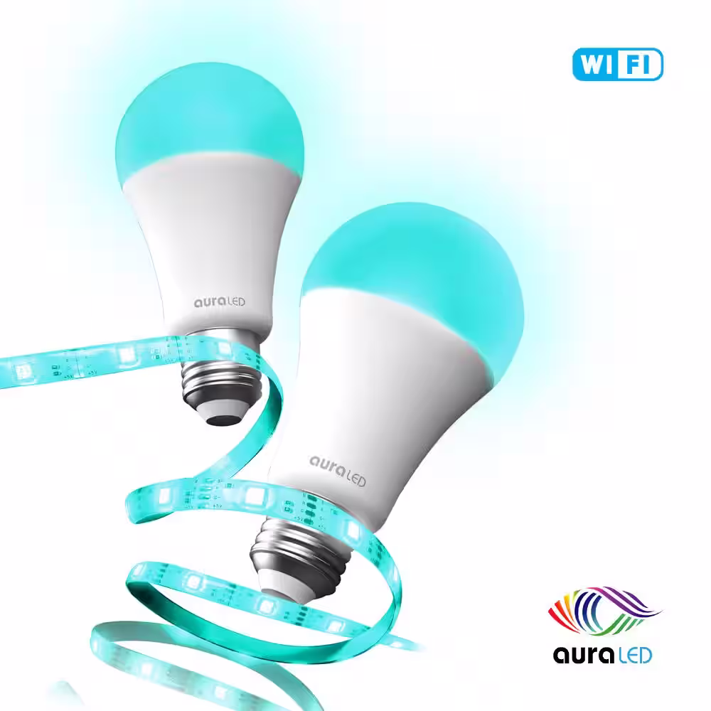 Tzumi Aura LED ColorKit Trio 75-Watt Equivalent A21 Dimmable Multi-Color and LED Light Strip 6500K (2-Pack)