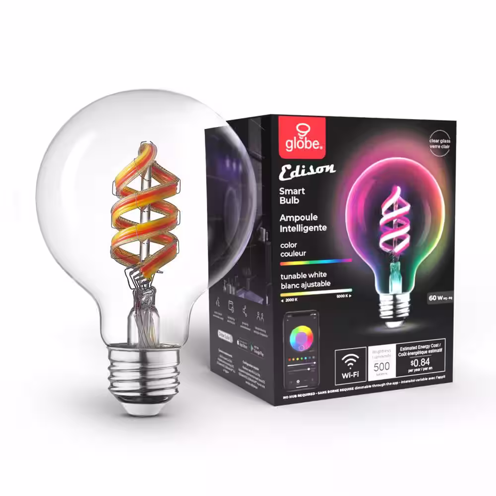 Globe Electric 7-Watt (60-Watt Equivalent) G25 Shape E26 Base Wi-Fi Smart LED Light Bulb, Multi-Color Changing RGB, Tunable White