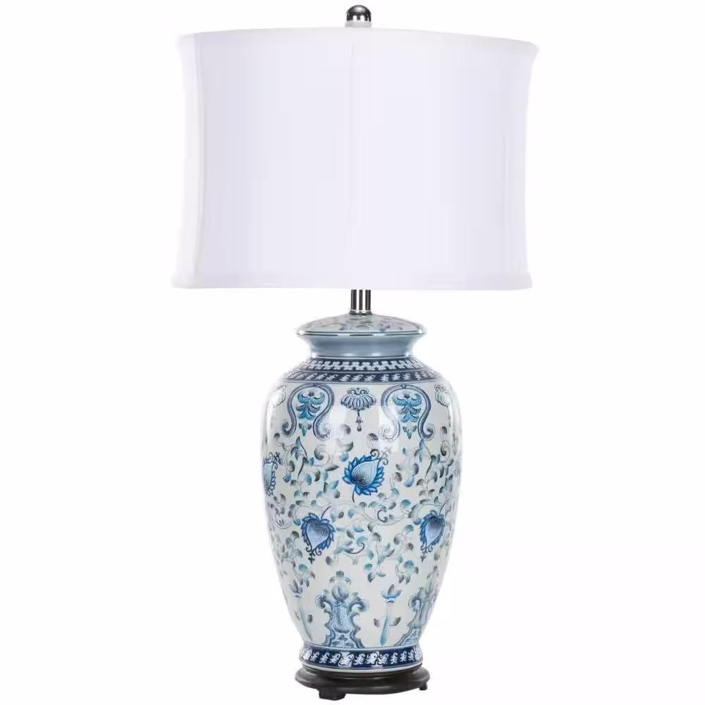 SAFAVIEH Paige 29 in. Antique Blue/White Ceramic Table Lamp with White Shade
