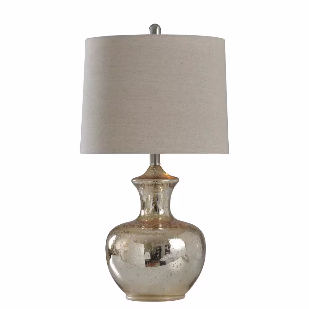 StyleCraft 25 in. Silver Mercury Table Lamp with Off White Hardback Fabric Shade