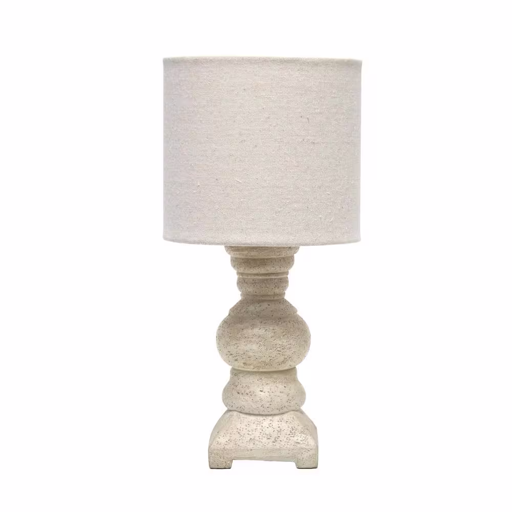 Elegant Designs 12.5 in. Beige Country Farmhouse Petite Textured Column Table Desk Lamp with Drum Fabric Shade