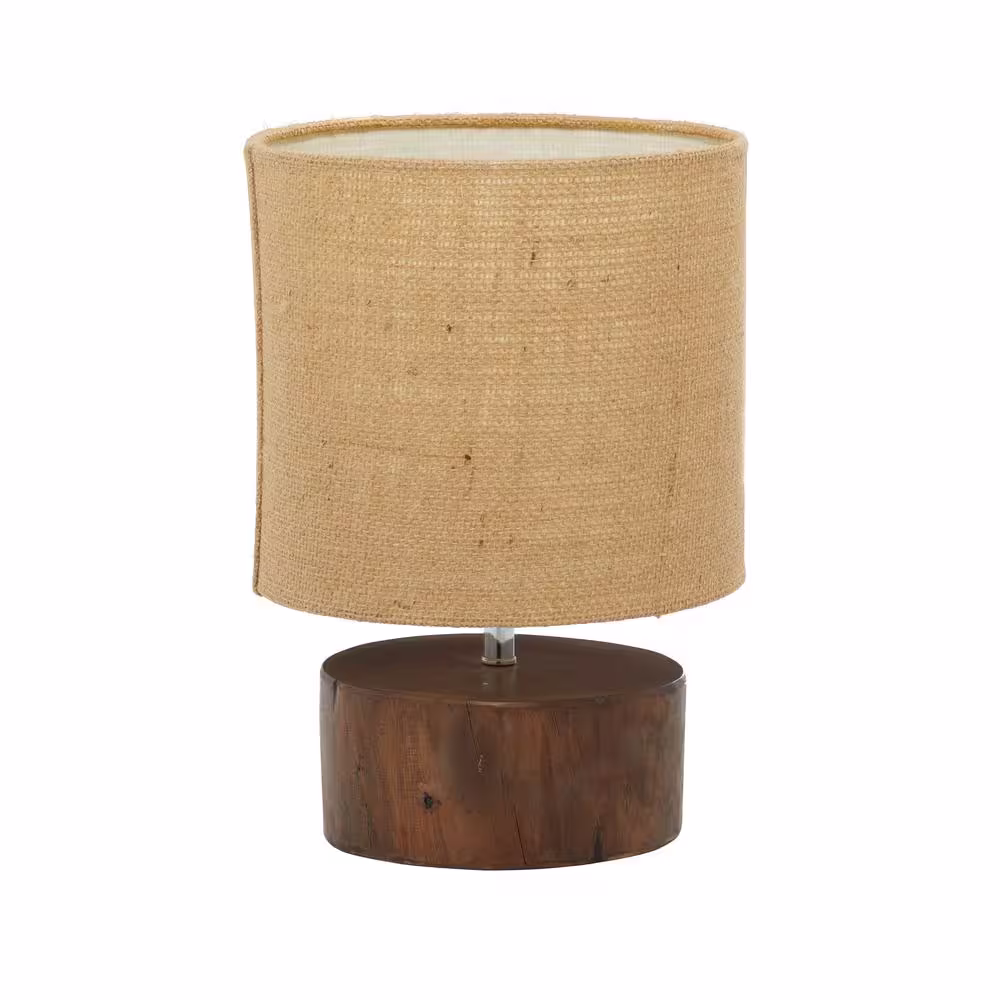 None 14 in. Dark Brown Wood Task and Reading Table Lamp with Jute Shade