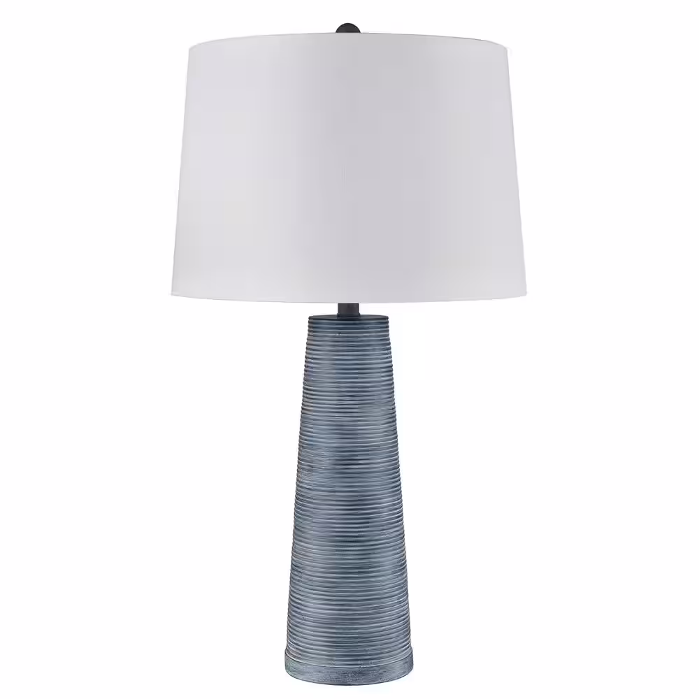 StyleCraft Conical 31.5 in. Denim Washed, White Urn Task and Reading Table Lamp for Living Room with White Linen Shade