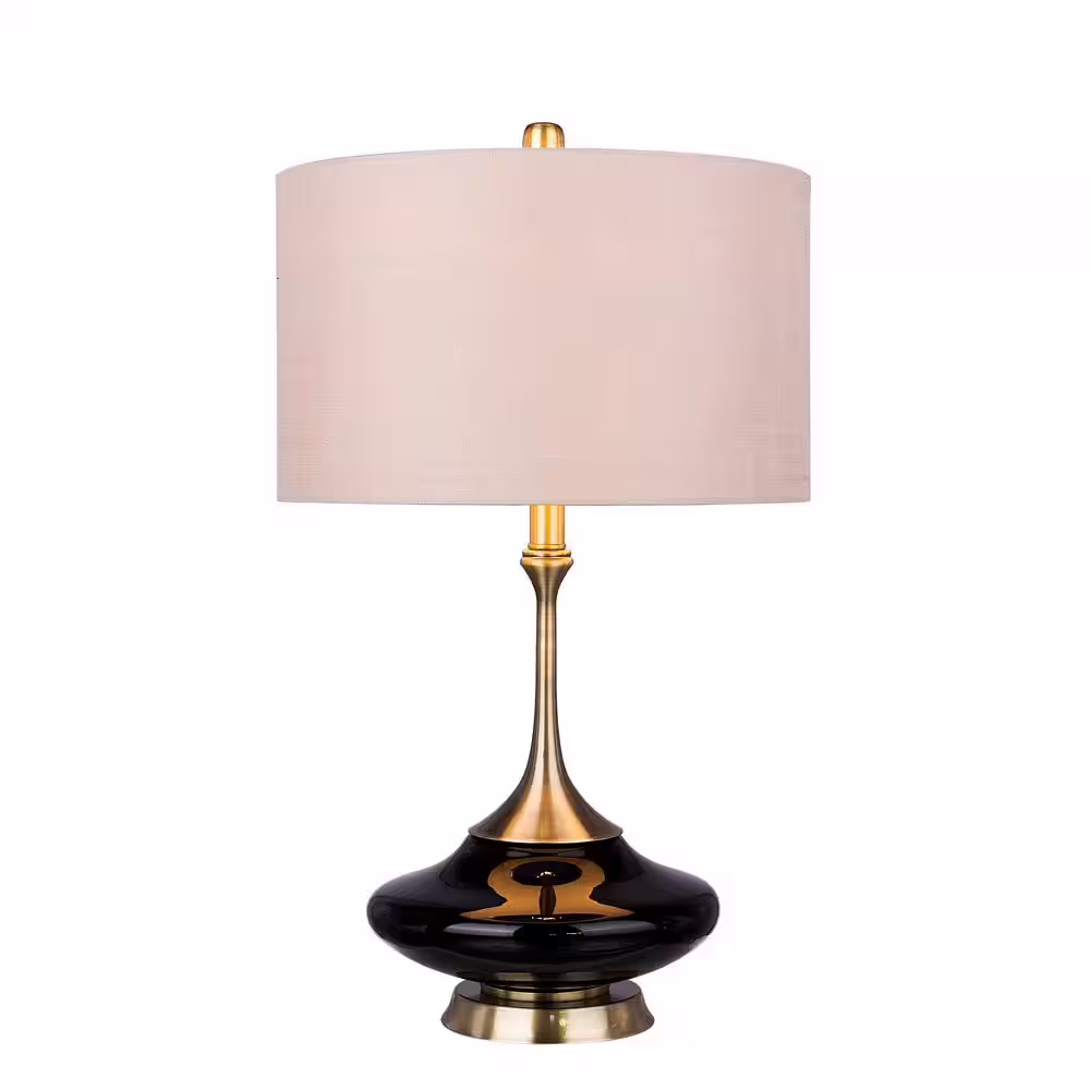 Fangio Lighting Retro 26.5 in. Black Glass and Antique Brass Metal Glass with Metal Table Lamp