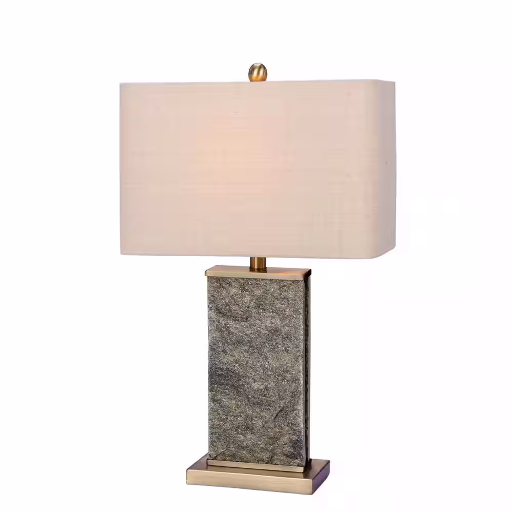 Fangio Lighting 26 in. Natural Stone and Antique Brass Stone and Metal Table Lamp