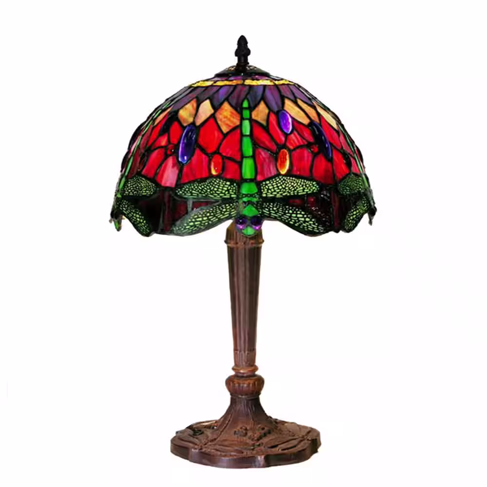WAREHOUSE OF TIFFANY Dragonfly 18 in. Bronze/Multicolored Table Lamp