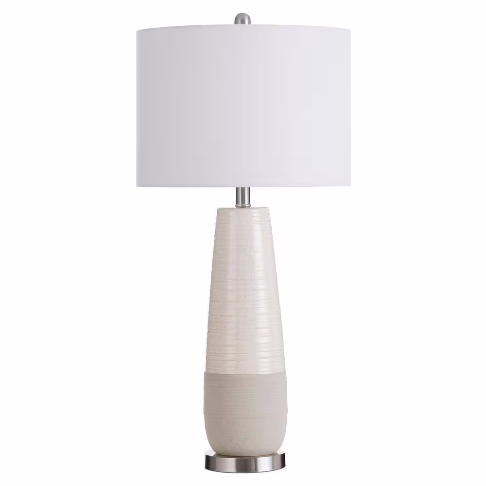 StyleCraft Evian 31 in. Speckled Cream, Greige, Brushed Silver Ceramic Table Lamp with Brushed Silver Base