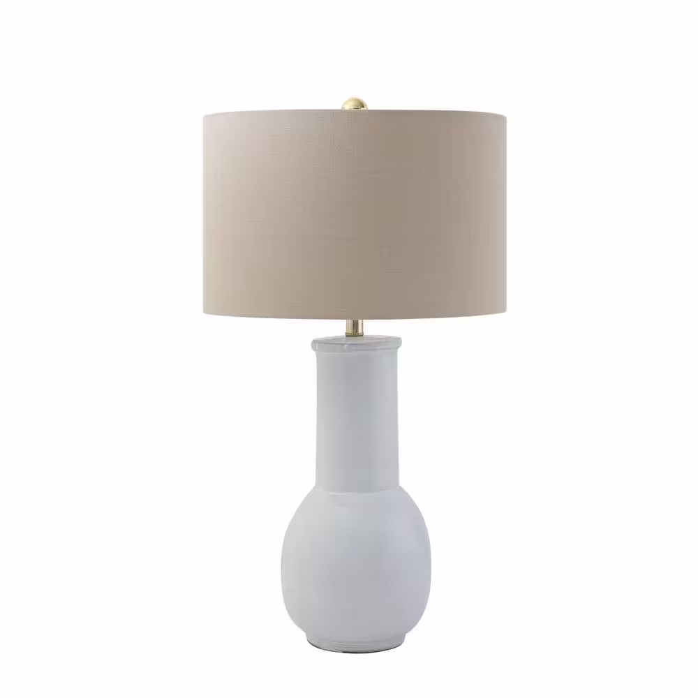 Storied Home 31 in. White Terracotta Table Lamp with Natural Linen Shade