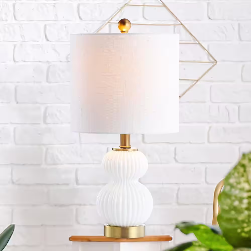 JONATHAN Y Daphne 20 in. White/Brass Ribbed Metal/Glass LED Table Lamp