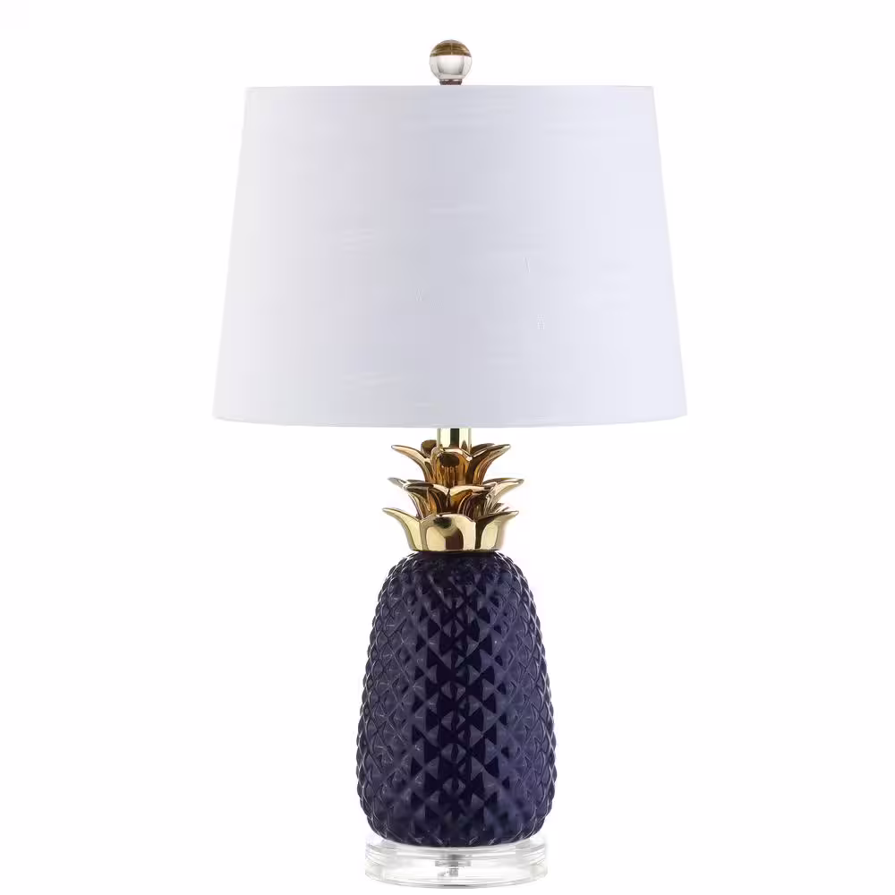 JONATHAN Y Pineapple 23 in. Navy/Gold Ceramic Table Lamp