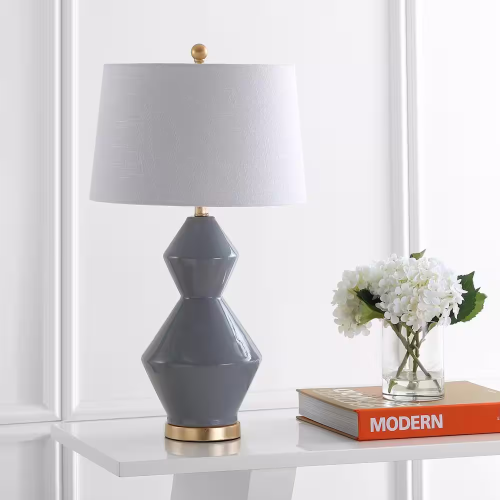 JONATHAN Y Alba 29 in. Gray/Gold Leaf Geometric Ceramic/Metal LED Table Lamp