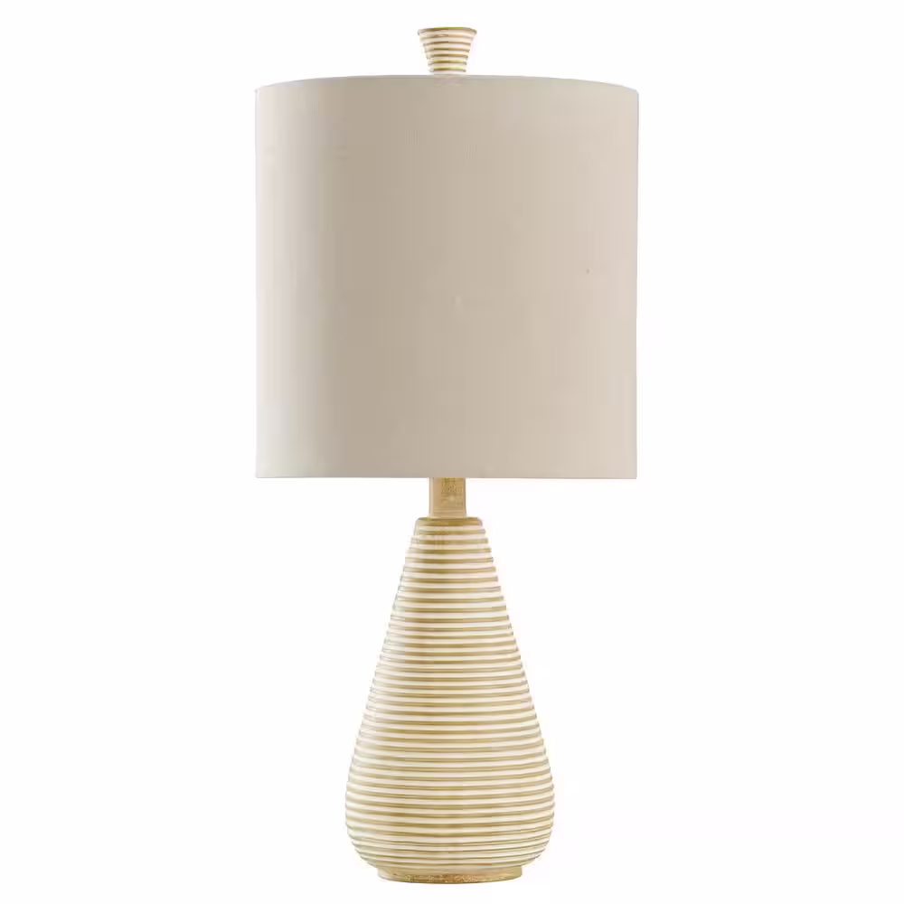 StyleCraft 24 in. Beige Table Lamp with Cream Hardback Fabric Shade