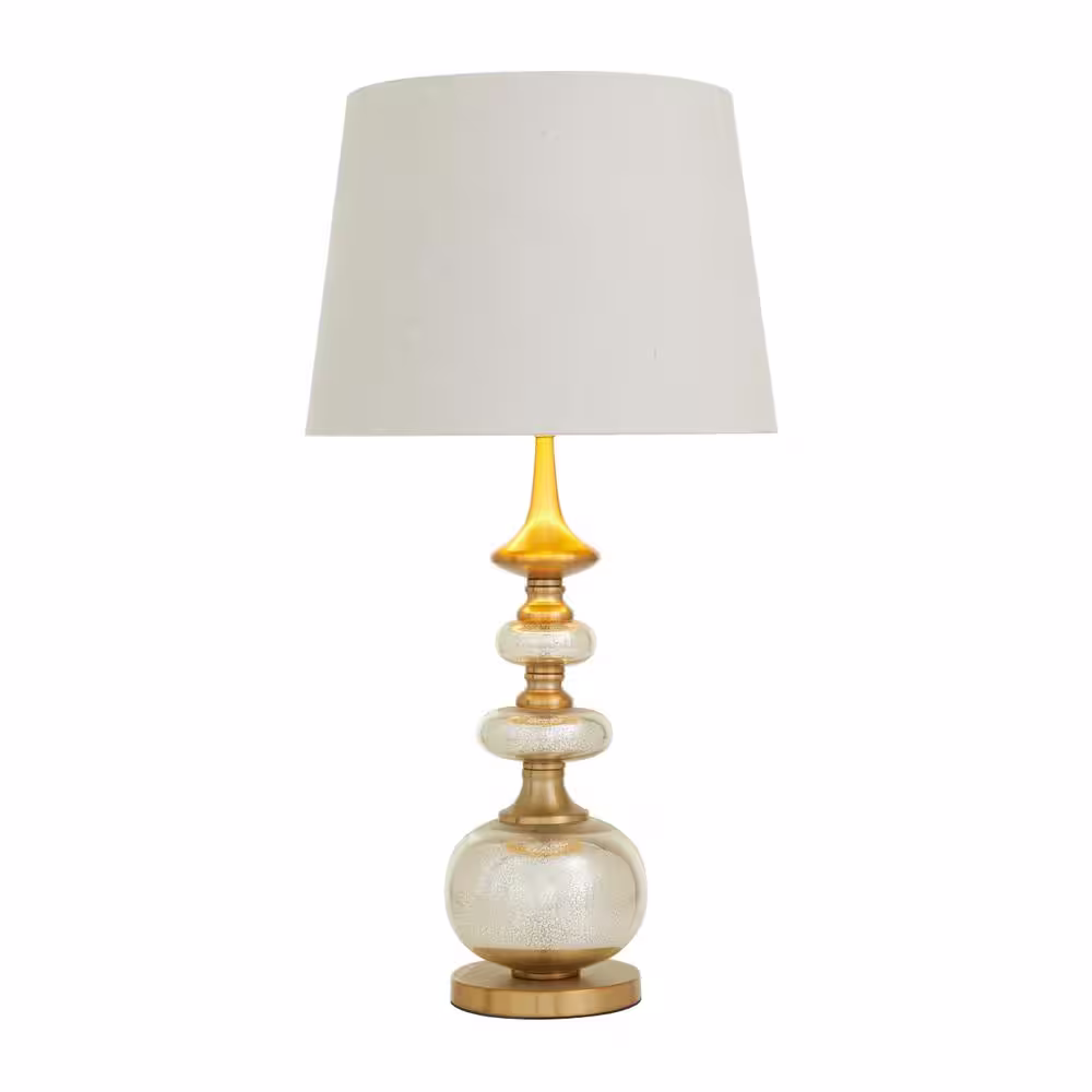 Litton Lane 30 in. Silver Linen Task and Reading Table Lamp with Gold Accents