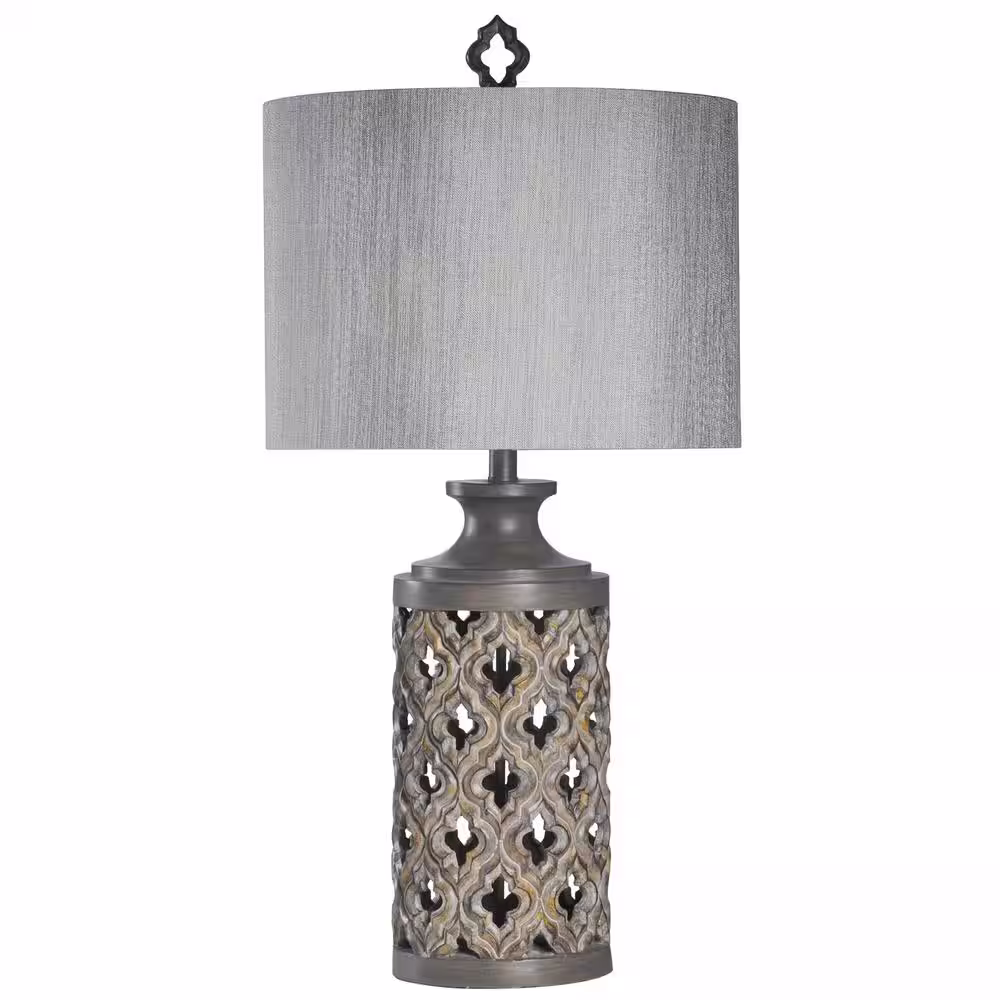 StyleCraft 34.5 in. Vincent Gray Table Lamp with Gray Hardback Fabric Shade