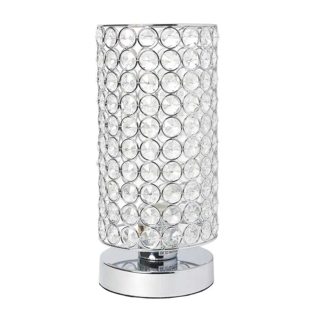 Elegant Designs 10.75 in. 1-Light Chrome Elipse Crystal Bedside Nightstand Cylindrical Uplight Table Lamp