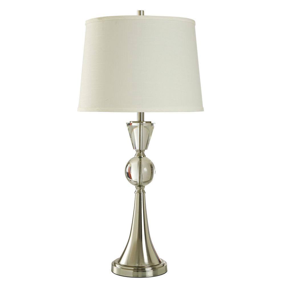 StyleCraft 37 in. Clear, Brushed Steel, Off-White Candlestick Task and Reading Table Lamp for Living Room with White Linen Shade