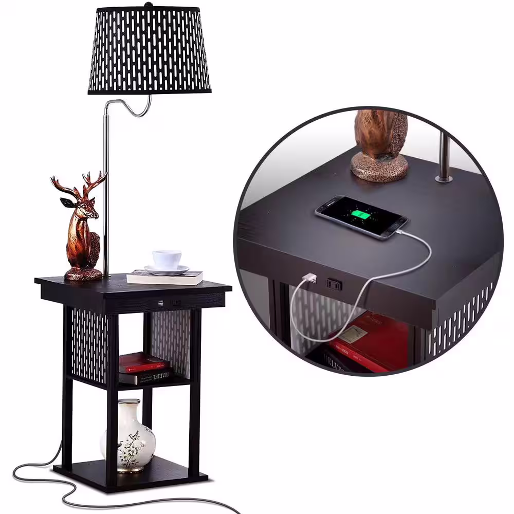 Brightech Madison 56 in. Black Narrow End Table with Built-In LED Lamp with Pattern Shade and USB Port