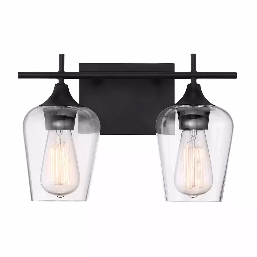 Savoy House Octave 13.75 in. W x 9 in. H 2-Light English Bronze Bathroom Vanity Light with Clear Glass Shades