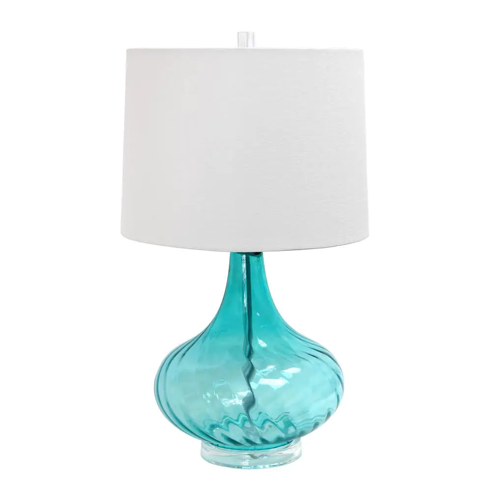Elegant Designs 24 in. Light Blue Glass Table Lamp with Fabric Shade