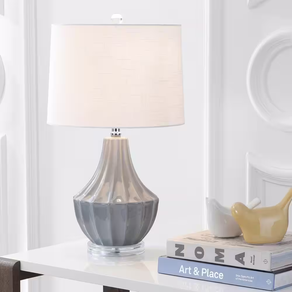 JONATHAN Y Tate 24.5 in. Gray Ceramic Table Lamp
