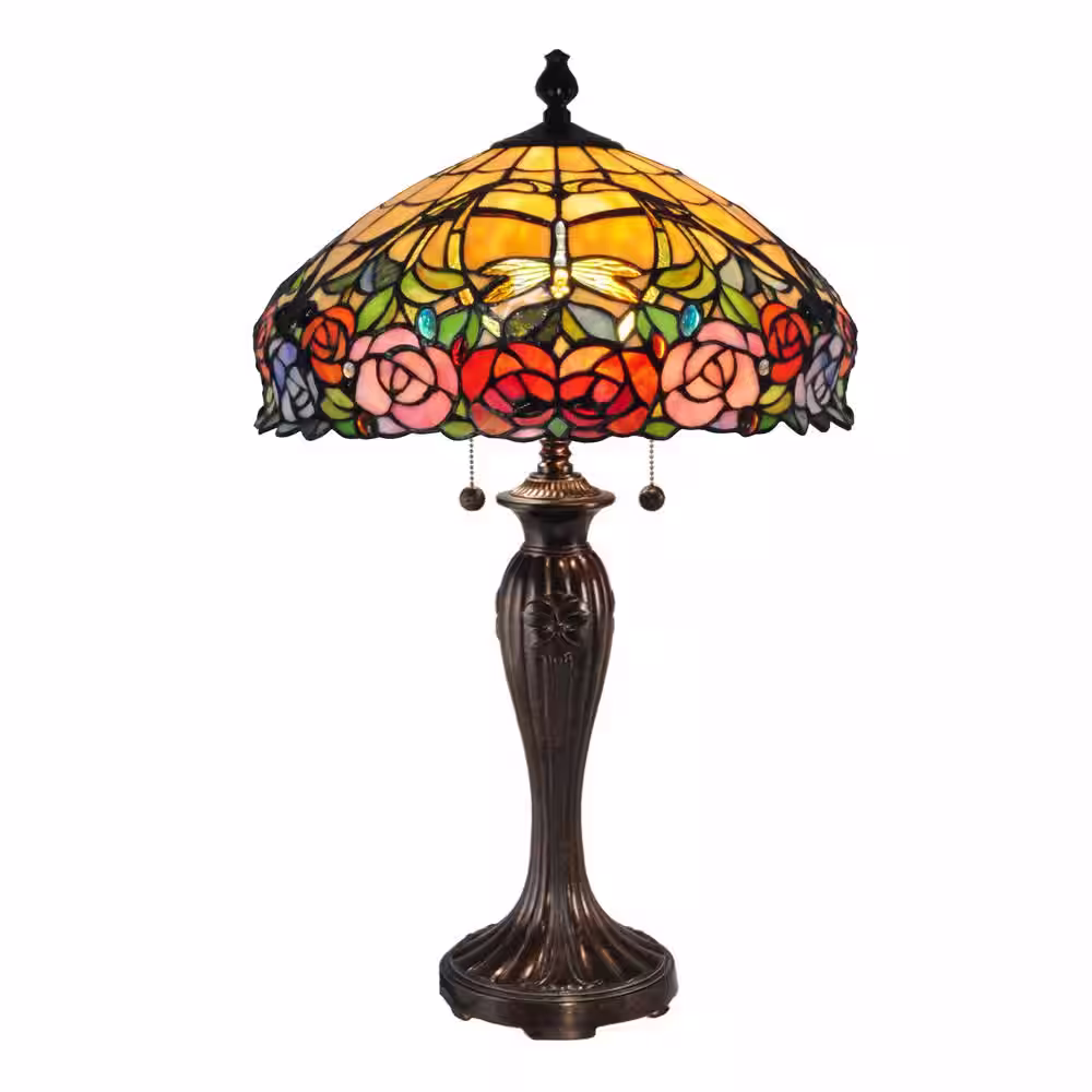 Amora Lighting 23 in. Tiffany Style Red Yellow Rose Floral Banker Table Lamp