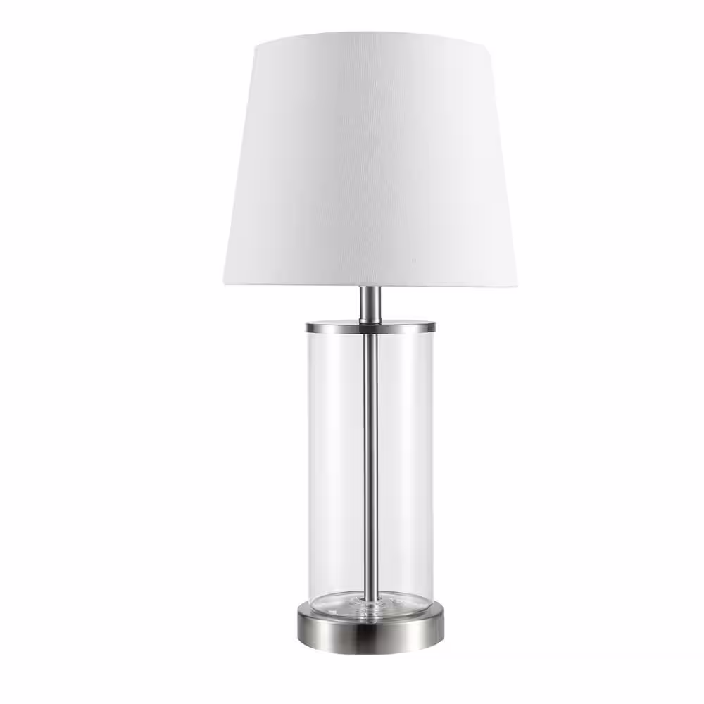Globe Electric Maya 20 in. Fillable Clear Glass Table Lamp with White Linen Shade