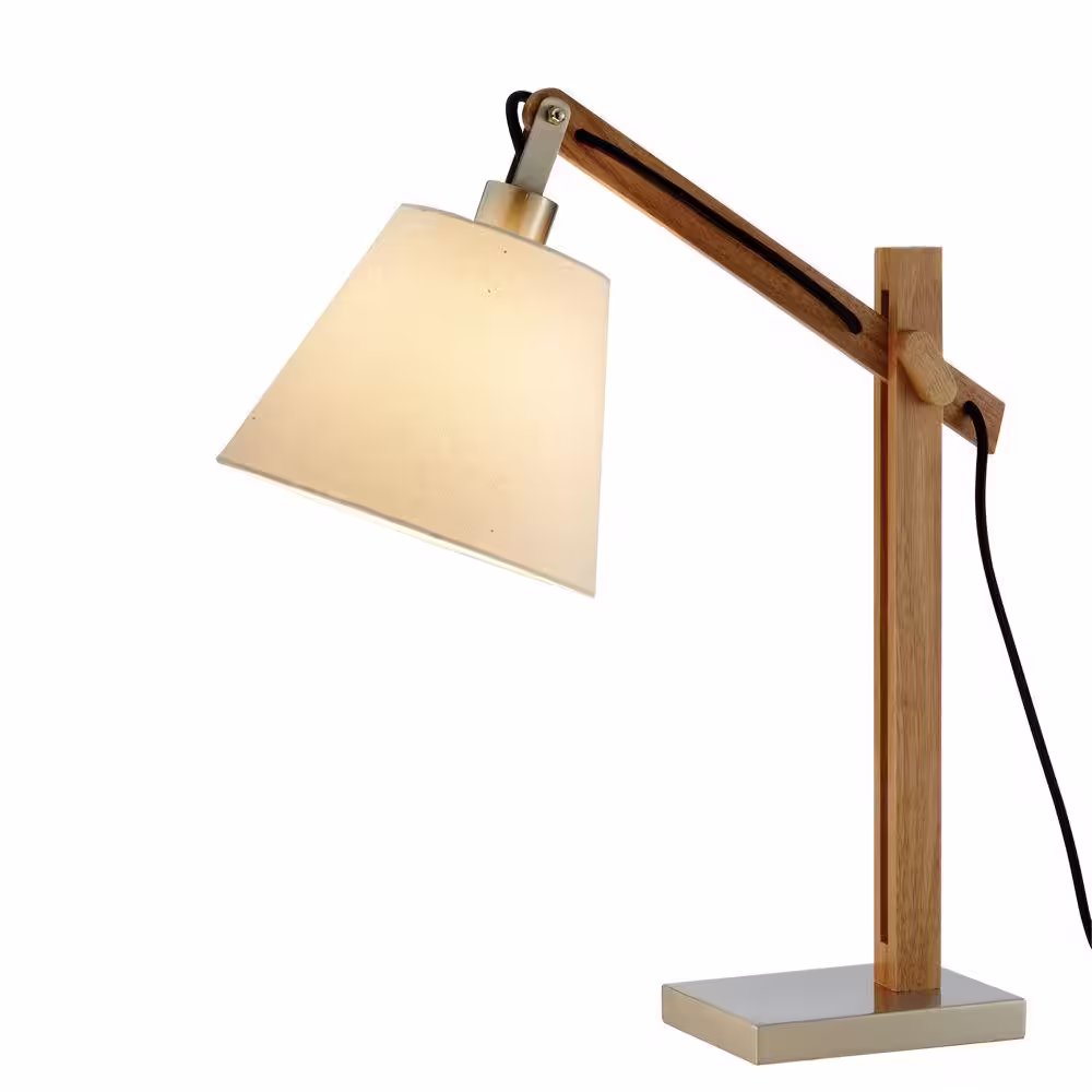 StyleCraft 25.5 in. French Oak Table Lamp with White Hardback Fabric Shade