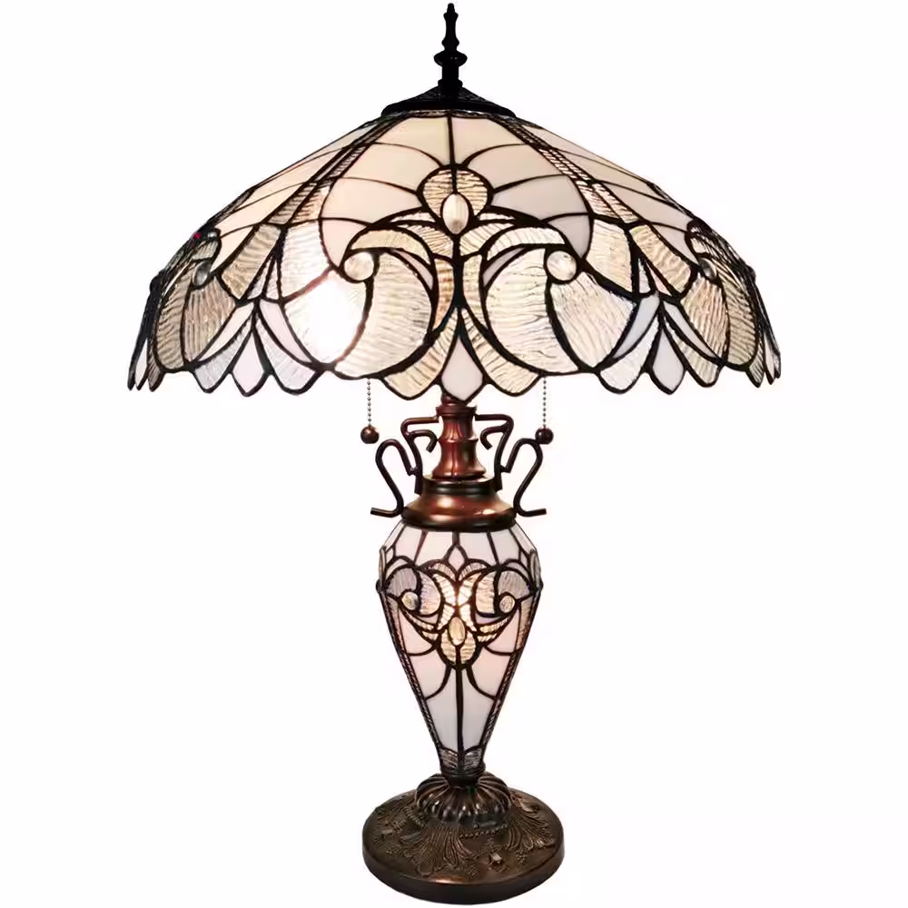 Amora Lighting 23 in. Tiffany Style Jagged Edge Glass-Base Table Desk Banker Lamp