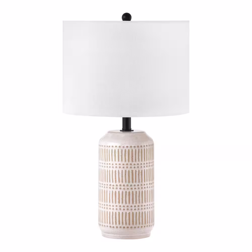 Hampton Bay Saddlebrook 21.5 in. Cream Ceramic and Faux Wood Table Lamp with White Fabric Shade