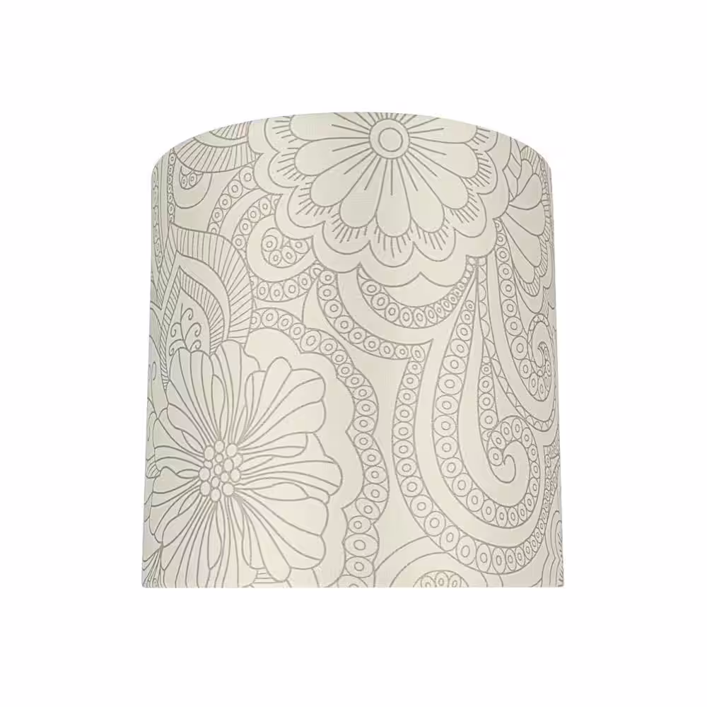 Aspen Creative Corporation 10 in. x 10 in. White and Grey Floral Print Drum/Cylinder Lamp Shade