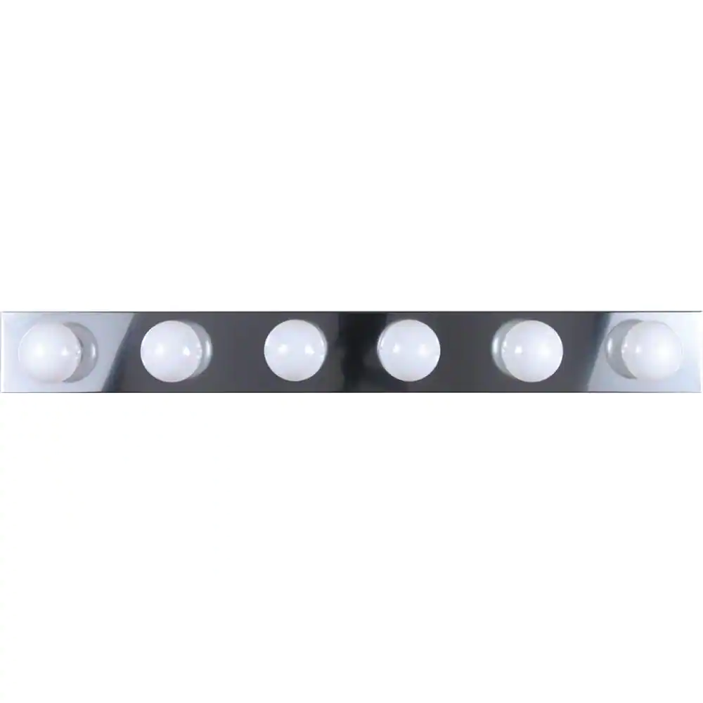 Volume Lighting 6-Light Indoor Chrome Movie Beauty Makeup Hollywood Bath or Vanity Light Bar Wall Mount or Wall Sconce