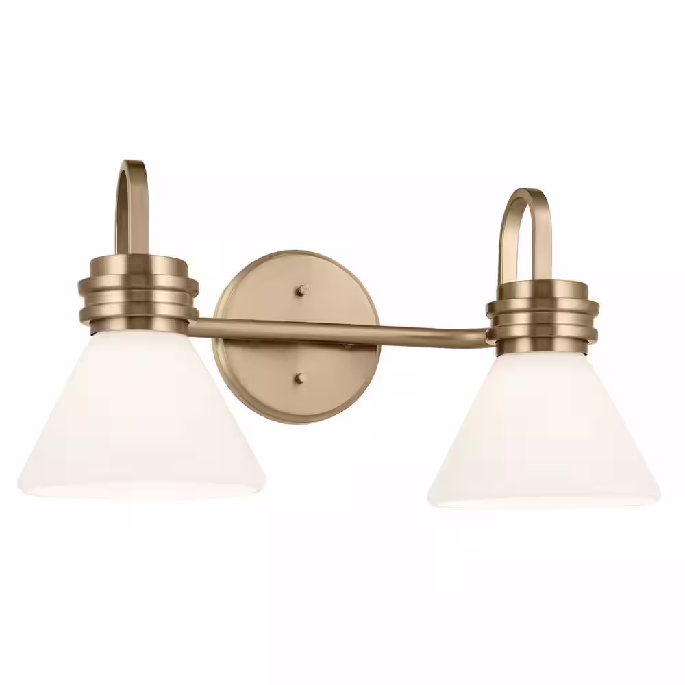 KICHLER Farum 19.25 in. 2-Light Champagne Bronze Modern Bathroom Vanity Light with Opal Glass Shades