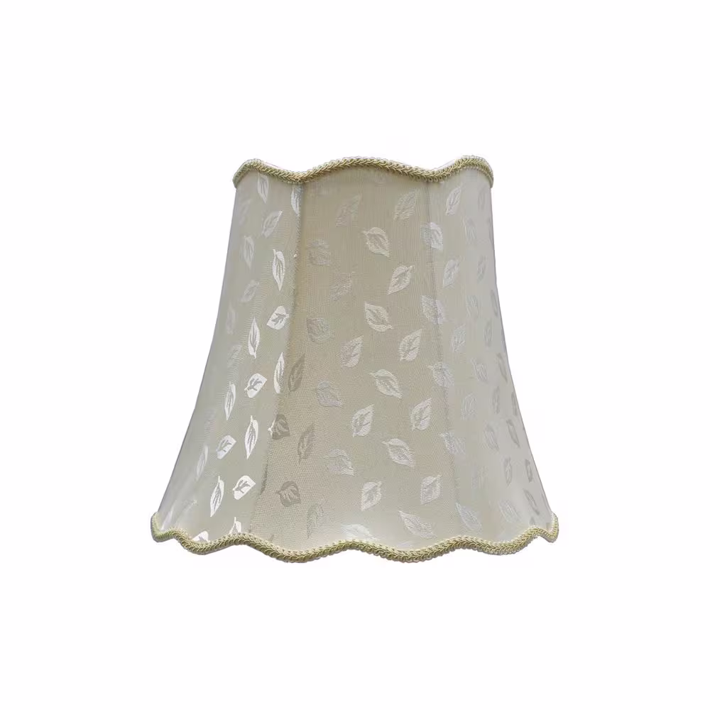Aspen Creative Corporation 16 in. x 15 in. Butter Creme and Leaf Design and Creme Braided Trim Scallop Bell Lamp Shade