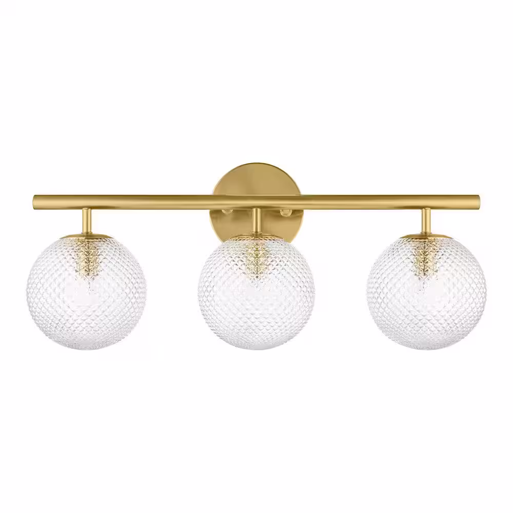 Hampton Bay Walsh 22 in. 3-Light Brass Vanity Light with Prismatic Glass Shades