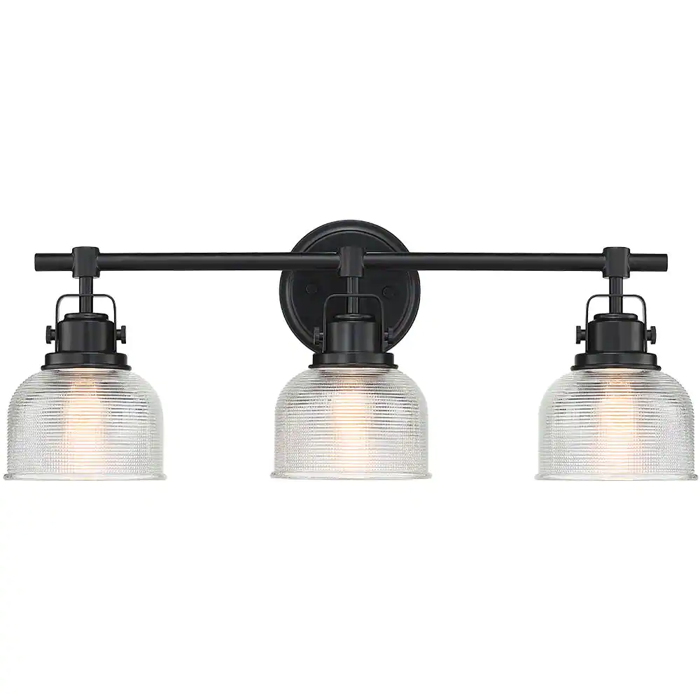 TRUE FINE 24 in. 3-Light Black Bathroom Vanity Light with Clear Prismatic Glass Shade