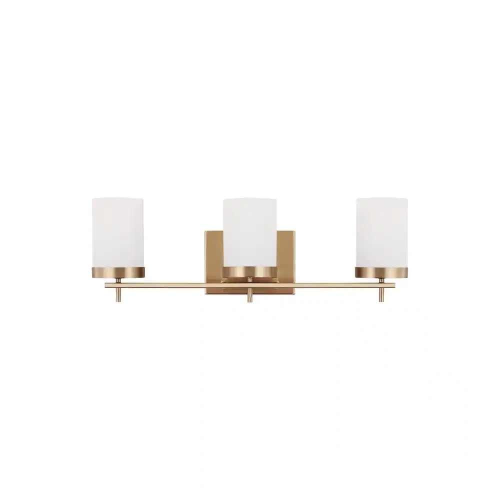 Generation Lighting Zire 24 in. 3-Light Satin Brass Bathroom Vanity Light with Etched White Glass Shades