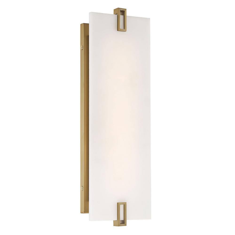 Minka Lavery Aizen 1-Light Brass Soft 20-Watt LED Wall Sconce with White Faux Alabaster Shade