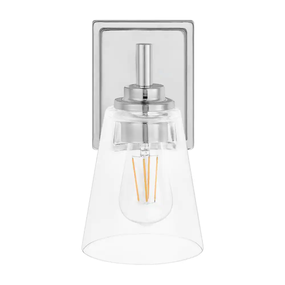Hampton Bay Wakefield 5.25 in. 1-light Chrome Modern Indoor Wall Sconce with Clear Glass Shade
