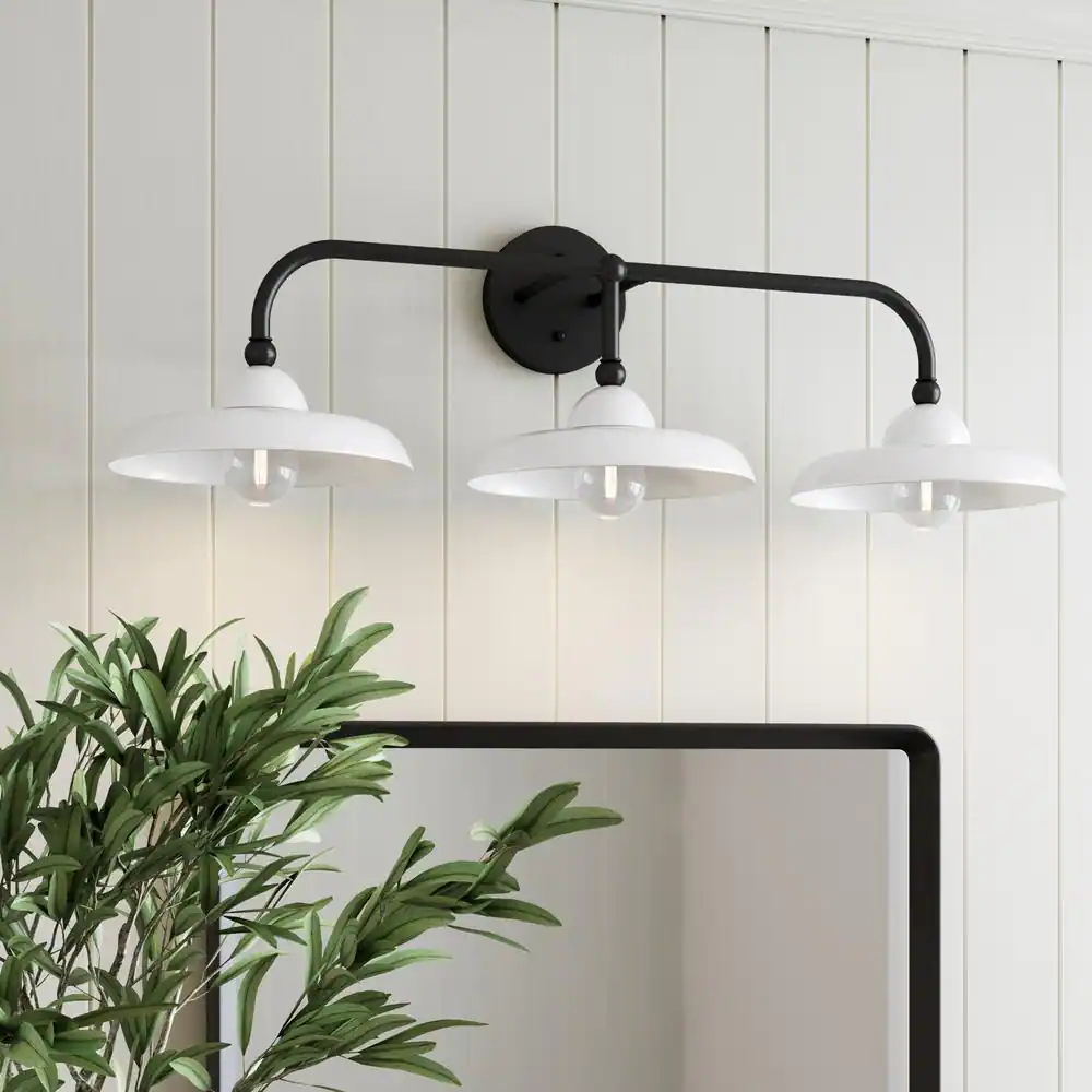 Nathan James Mable Farmhouse Bathroom 31 in. 3-Lights Vanity Light Fixture with Black Metal Frame and White Shade for Bathroom