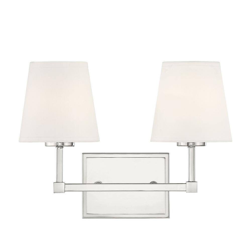 Savoy House 15 in. W x 9.5 in. H 2-Light Polished Nickel Bathroom Vanity Light with White Linen Fabric Shades
