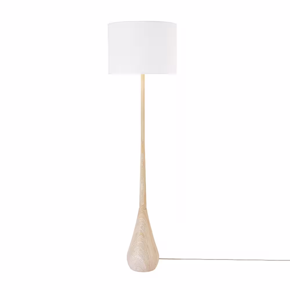 Globe Electric 65 in. Faux Wood Floor Lamp with White Cotton Shade