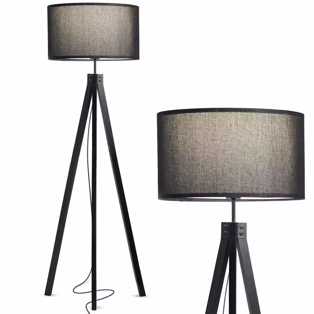 Brightech Eden 58 in. Black Wooden Tripod Floor Lamp