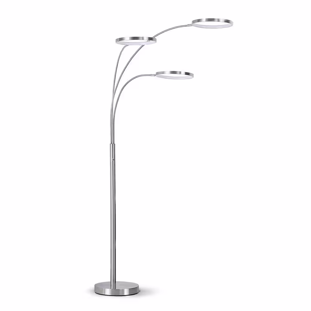 None Angels 80 in. H Brushed Nickel Floor Lamp 3-Ring Dimmable LED Lights Arched