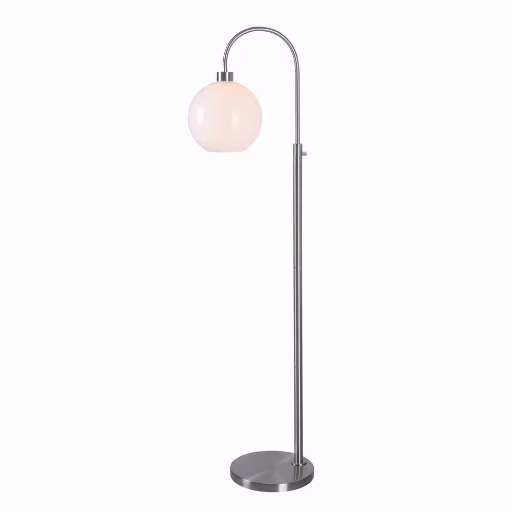Hampton Bay Highstone 63 in. Brushed Silver Indoor Floor Lamp with Opal Globe Shade