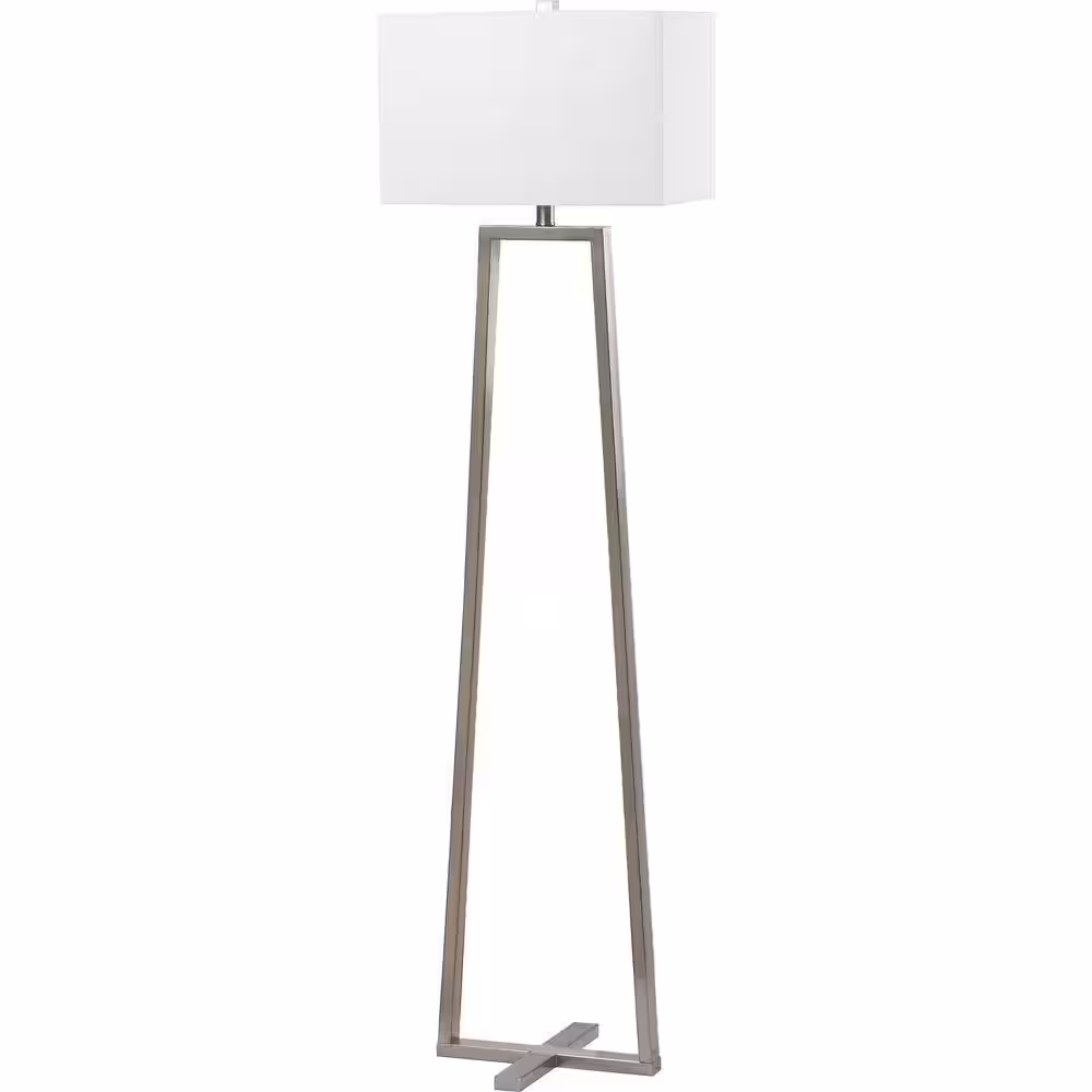 SAFAVIEH Lyell 60 in. Nickel Triangle Floor Lamp with White Shade