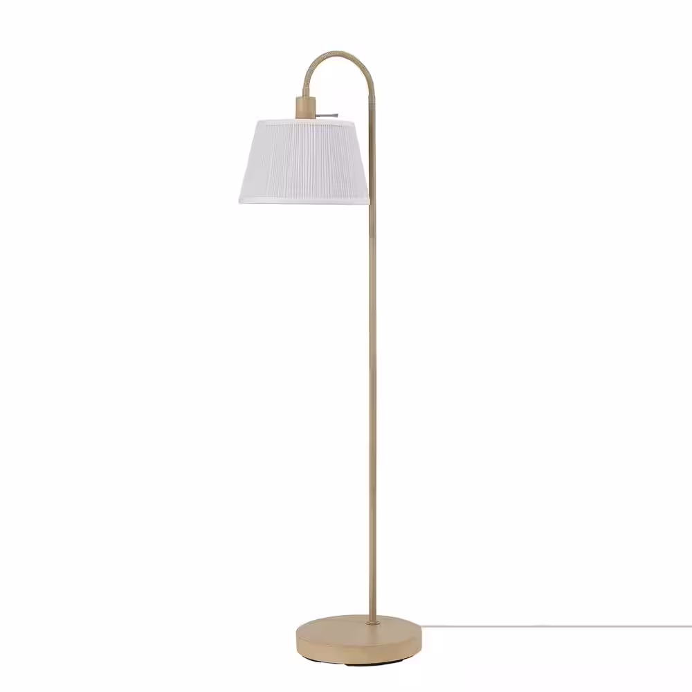 Globe Electric 68 in. Light Faux Wood Floor Lamp with White Pattern Shade, On/Off Rotary Switch on Socket