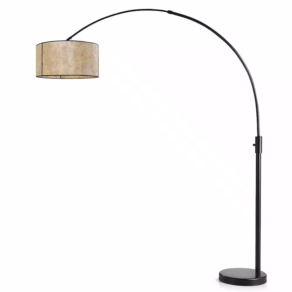 HomeGlam Orbita 82 in. Dark Bronze Furnish LED Dimmable Retractable Arch Floor Lamp, Bulb Included with Drum Mica Shade