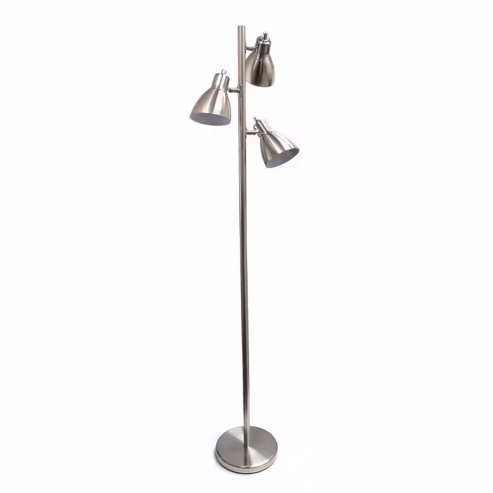 None 64 in. Brushed Nickel Tall Traditional 3-Light Metal Tree Floor Lamp with Metal Adjustable Spotlight Shades