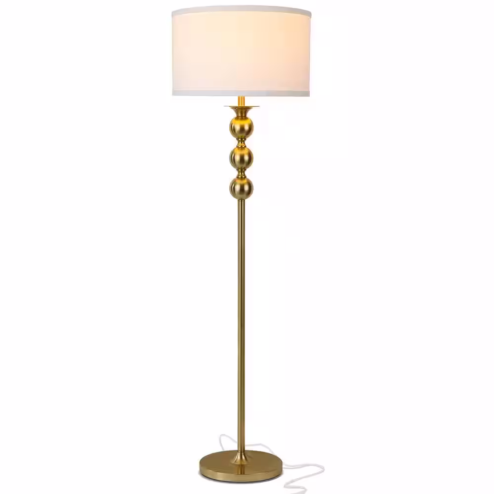 Brightech Riley 60 in. Antique Brass Tall Pole LED Standard Floor Lamp with Drum Shade
